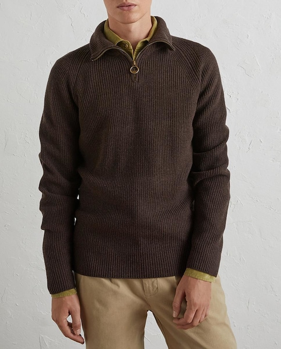 Jersey media cremallera de canalé con lana y cashmere de hombre