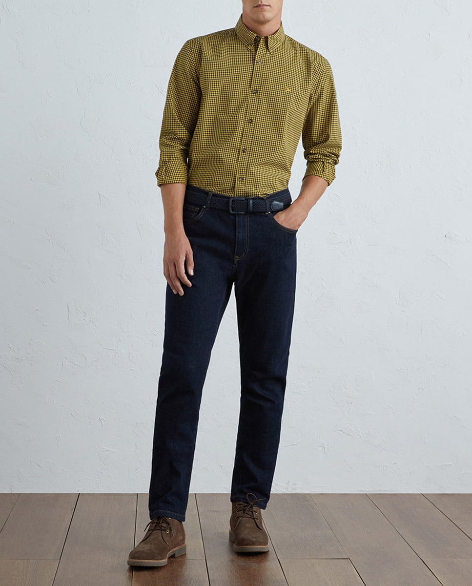 Camisa cuadros de popelín de hombre manga larga