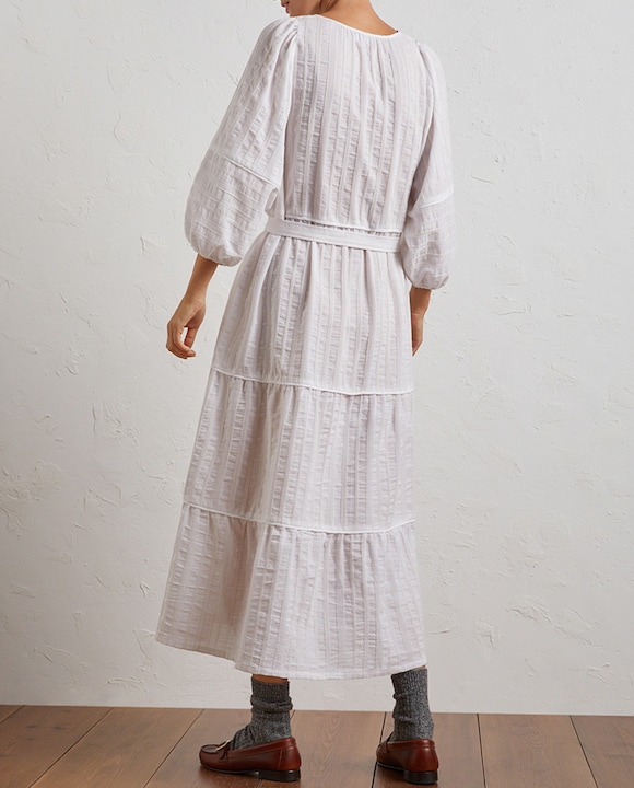 Vestido de manga corta con cuello caja