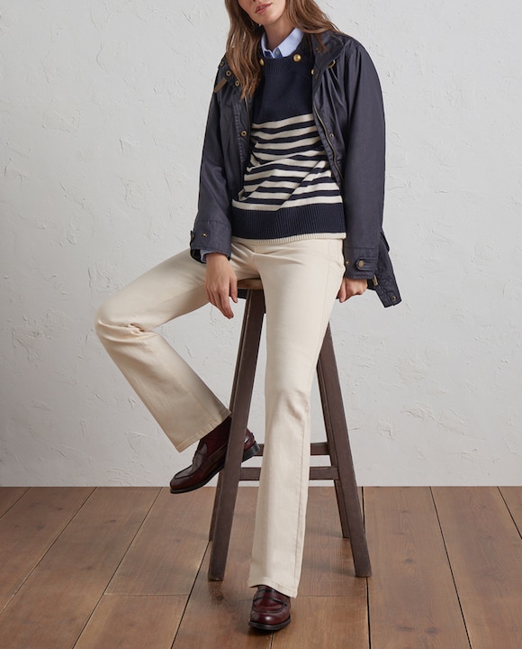 Jersey de mujer con rayas y botón dorado