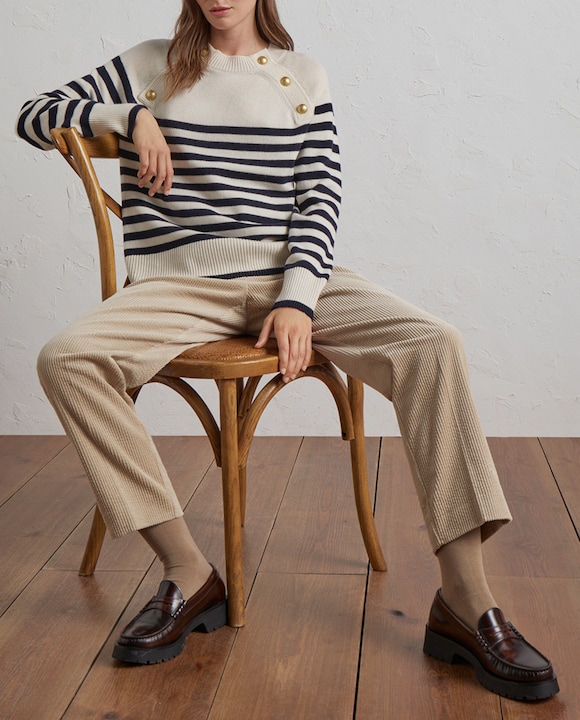 Jersey de mujer con rayas y botón dorado
