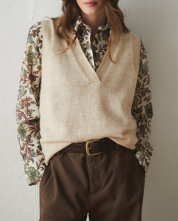 Chaleco de punto con escote de pico de mujer