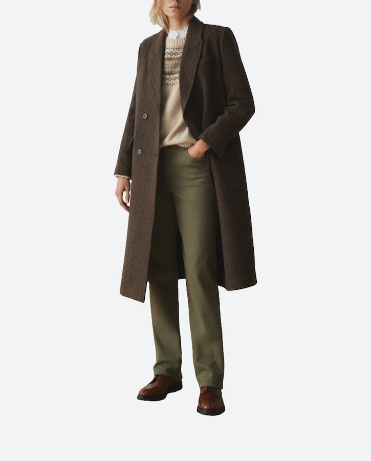 Abrigo largo de tejido de espiga de mujer