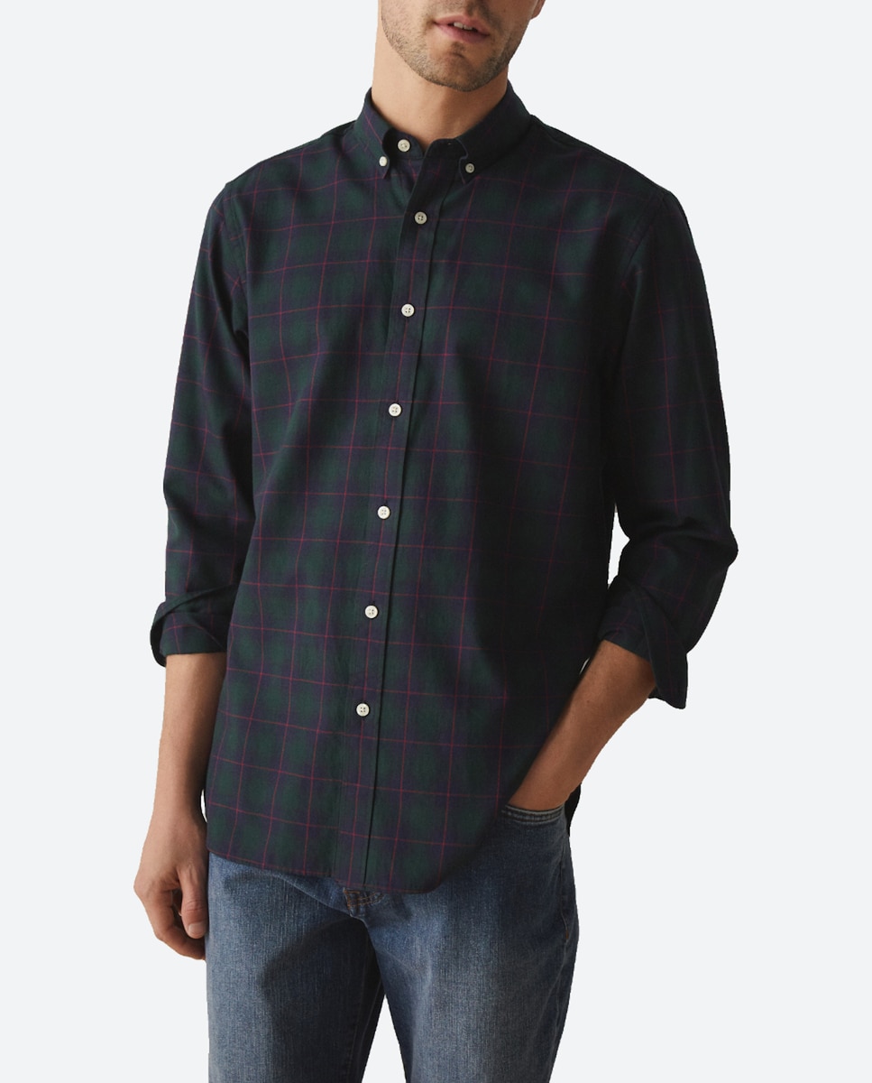 Camisa Twill de hombre de manga larga cuadros