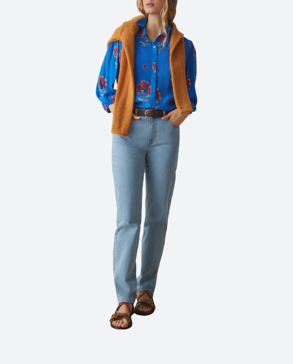 Blusa con canesú de manga 3/4