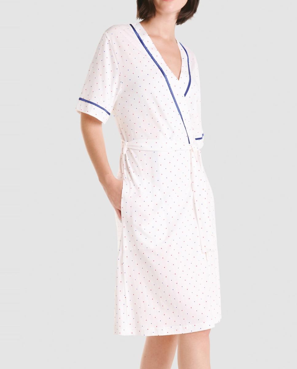 Bata corta de mujer tejido algodón modal estampado topitos