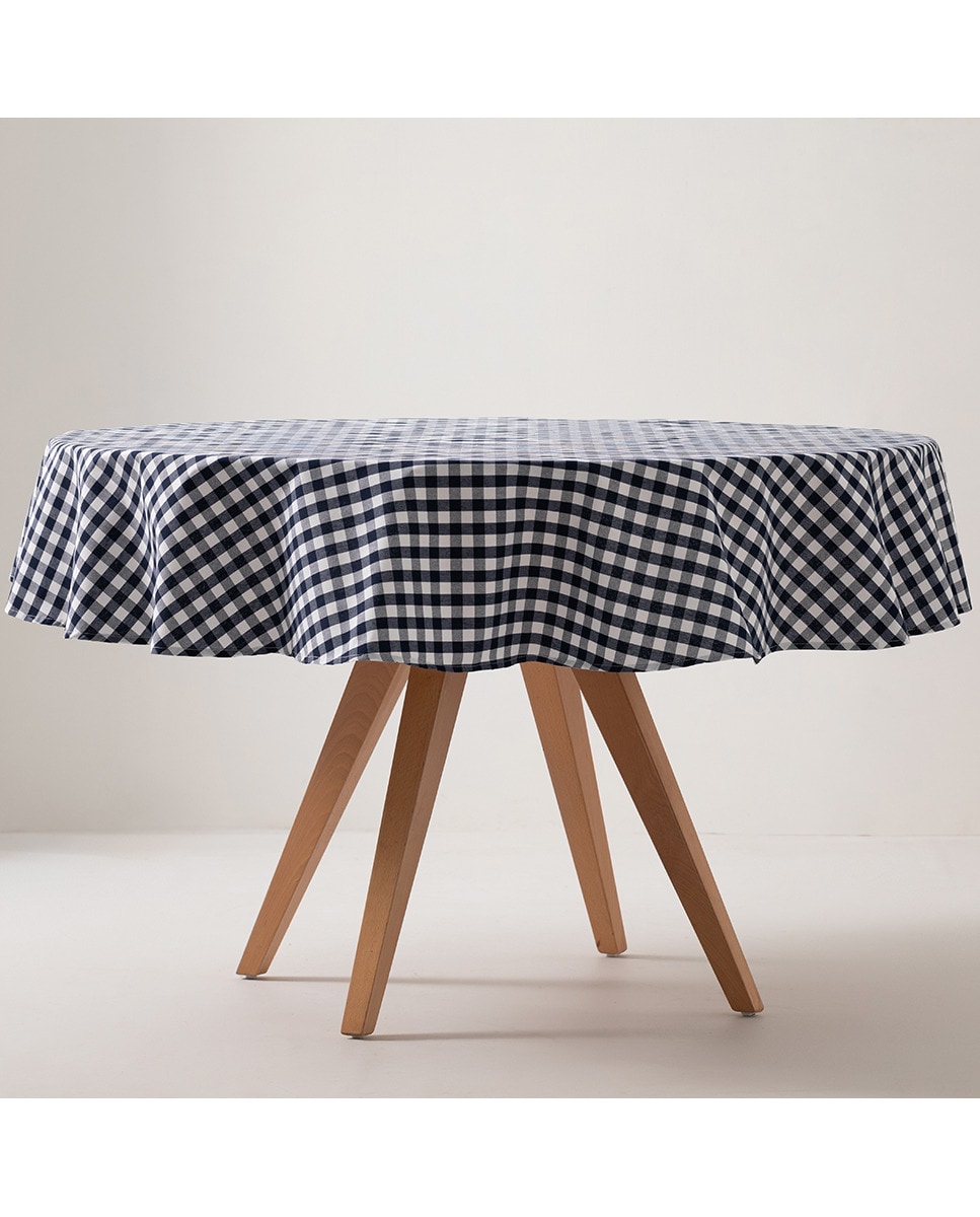 Mantel redondo antimanchas vichy azul marino