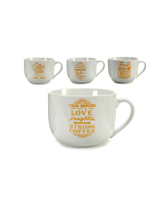 Pack 4 tazones 500ml asa coffee oro surtido en 4 diseños.