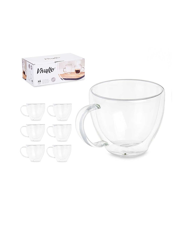 Pack 6 tazas cafe borosilicato dobnle pared 140 ml.