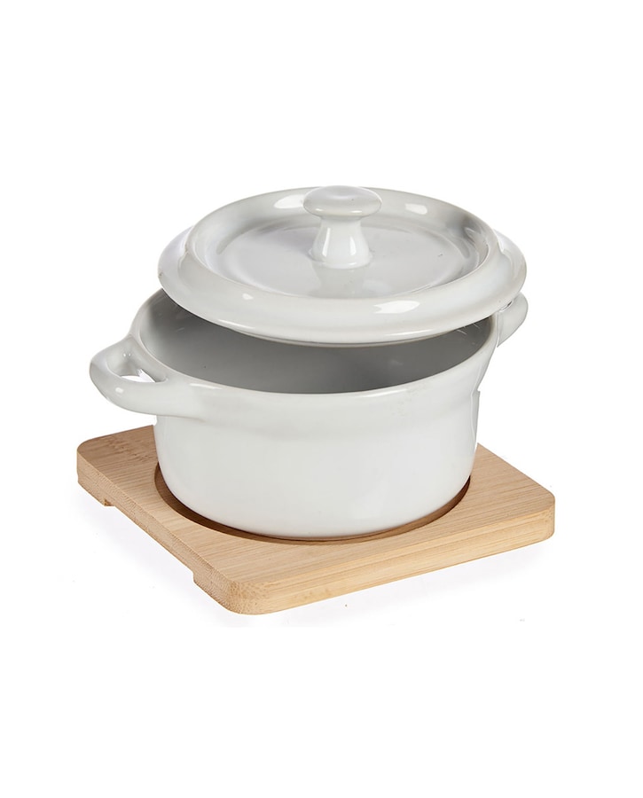 Cazuela cerámica redonda con base bambú