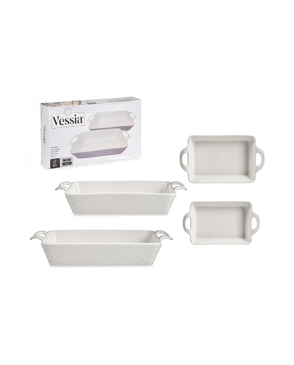 Set 2 bandejas porcelana rectangulares asas abiertas