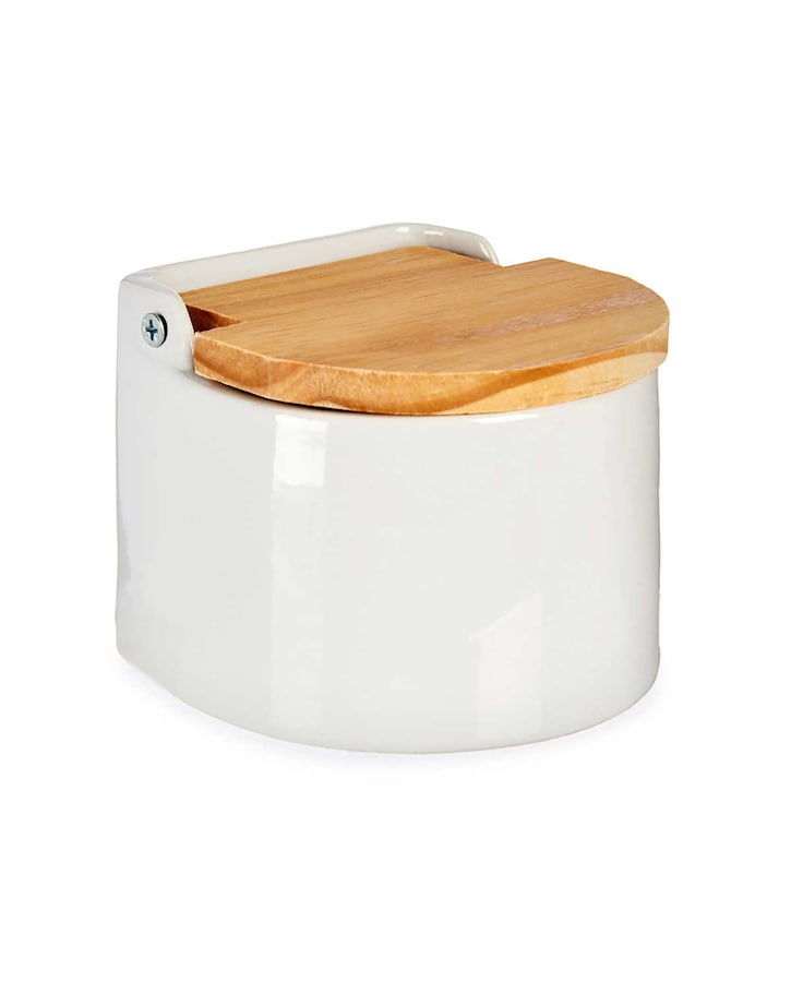 Salero blanco semi circular con tapa