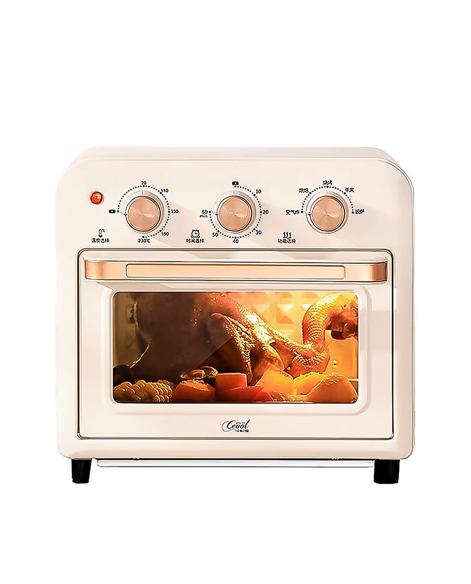 Horno freidora de aire con 15 litros de capacidad. Panel de control mecánico y 1300W de potencia.