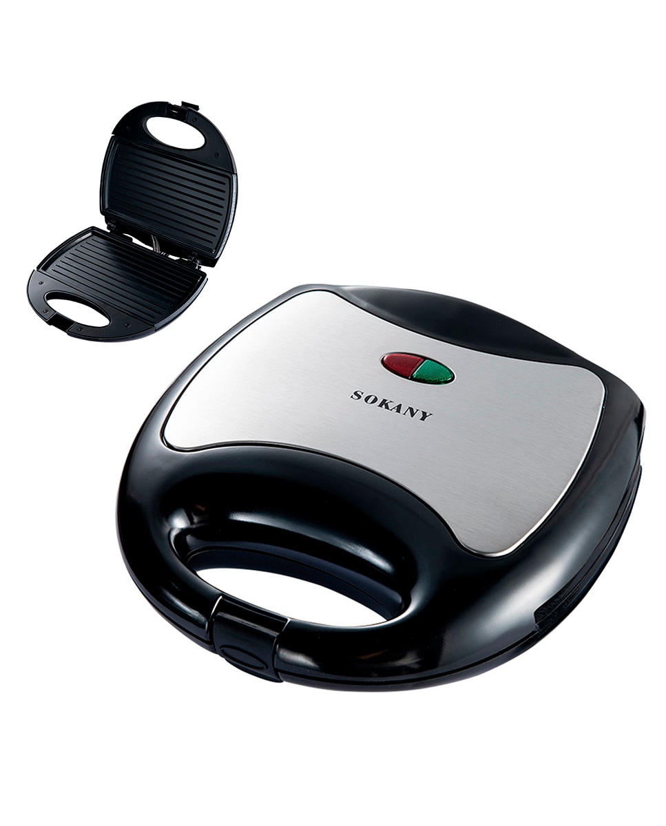 Sandwichera antiadherente con 750W de potencia y luz indicadora.