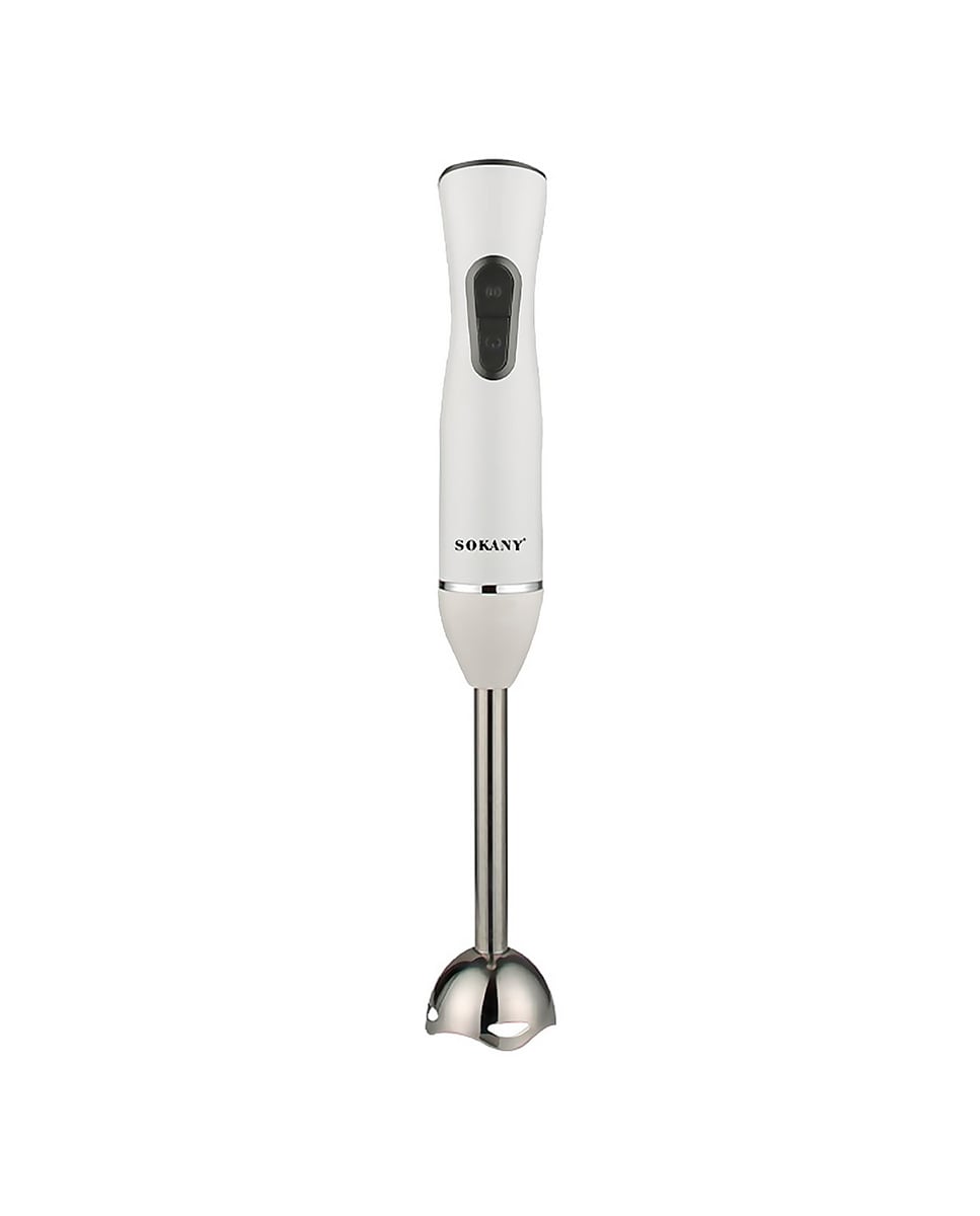 Batidora de mano de 600W con dos velocidades, diseño ergonómico y brazo de acero inoxidable apto para lava vajillas.