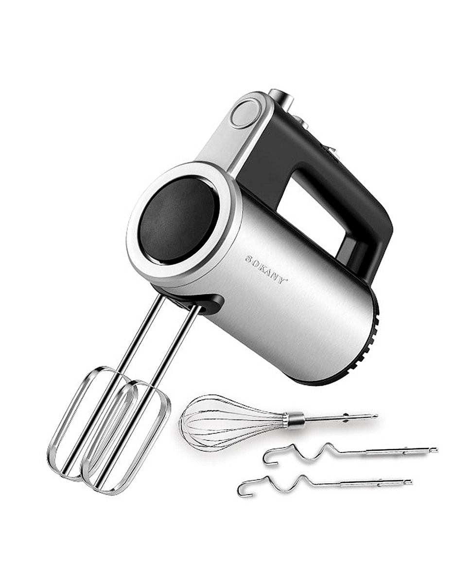 Batidora de mano de doble varilla, 800w, 5 velocidades, botón turbo, 4 varillas para batir y amasar, acero inoxidable.