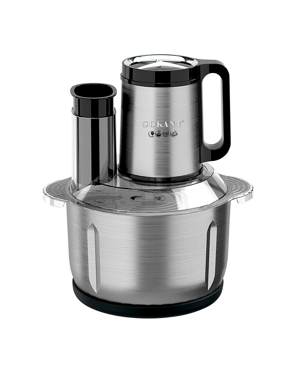 Robot de cocina procesador de alimentos 6 en 1. Motor de cobre de 1000W con 3 velocidades. Bol de acero inoxidable con 5L de capacidad.