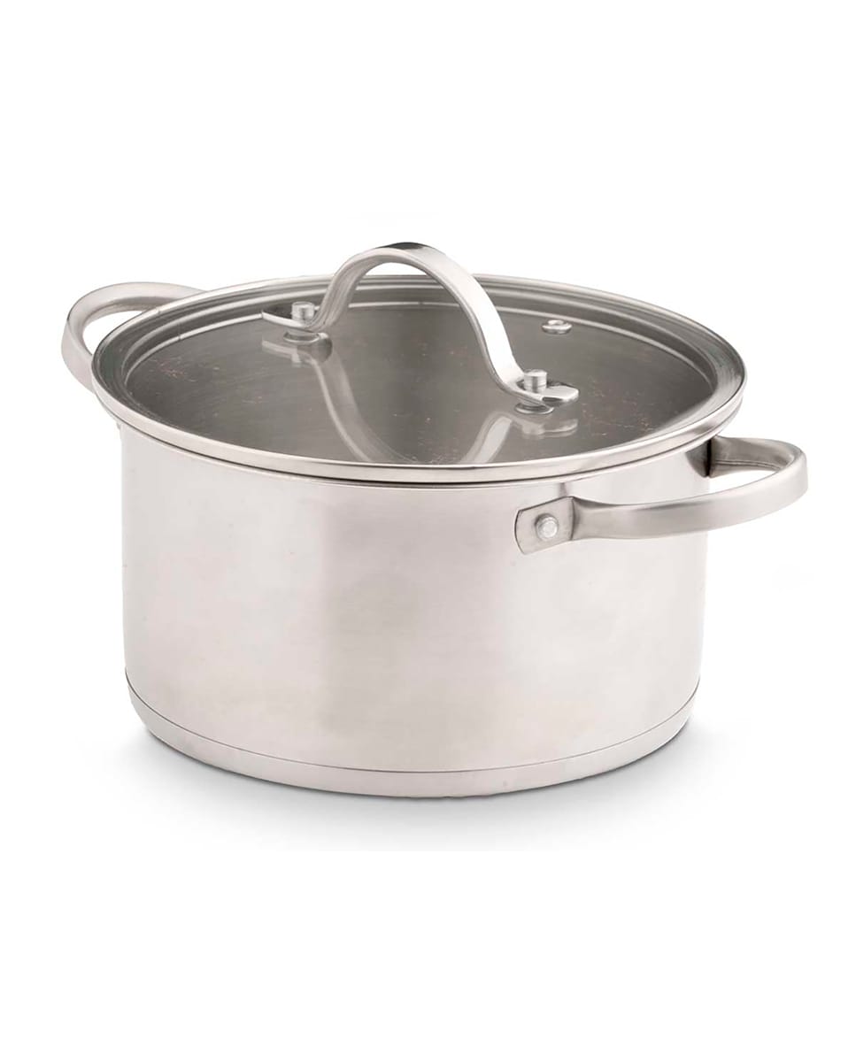 Cacerola de acero inoxidable con tapa de cristal. 20cm diametro.