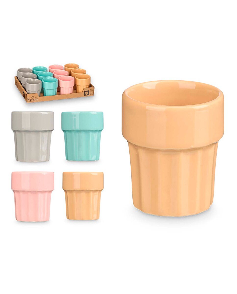 Set de 12 vasos de porcelana para el café. Surtido 4 colores. 90ml de capacidad.
