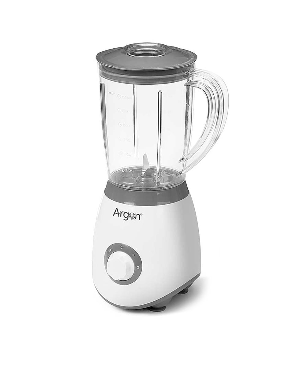 Batidora de vaso blanca. Cuchillas de acero inoxidable. 350W de potencia y 1.5L de capacidad.