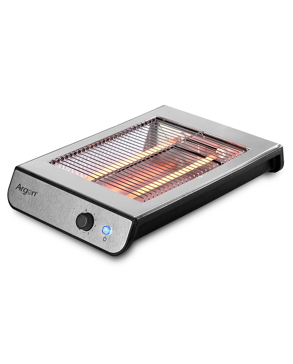 Tostador plano de acero con 600W, bandeja extraible recogemigas y 6 intensidades.