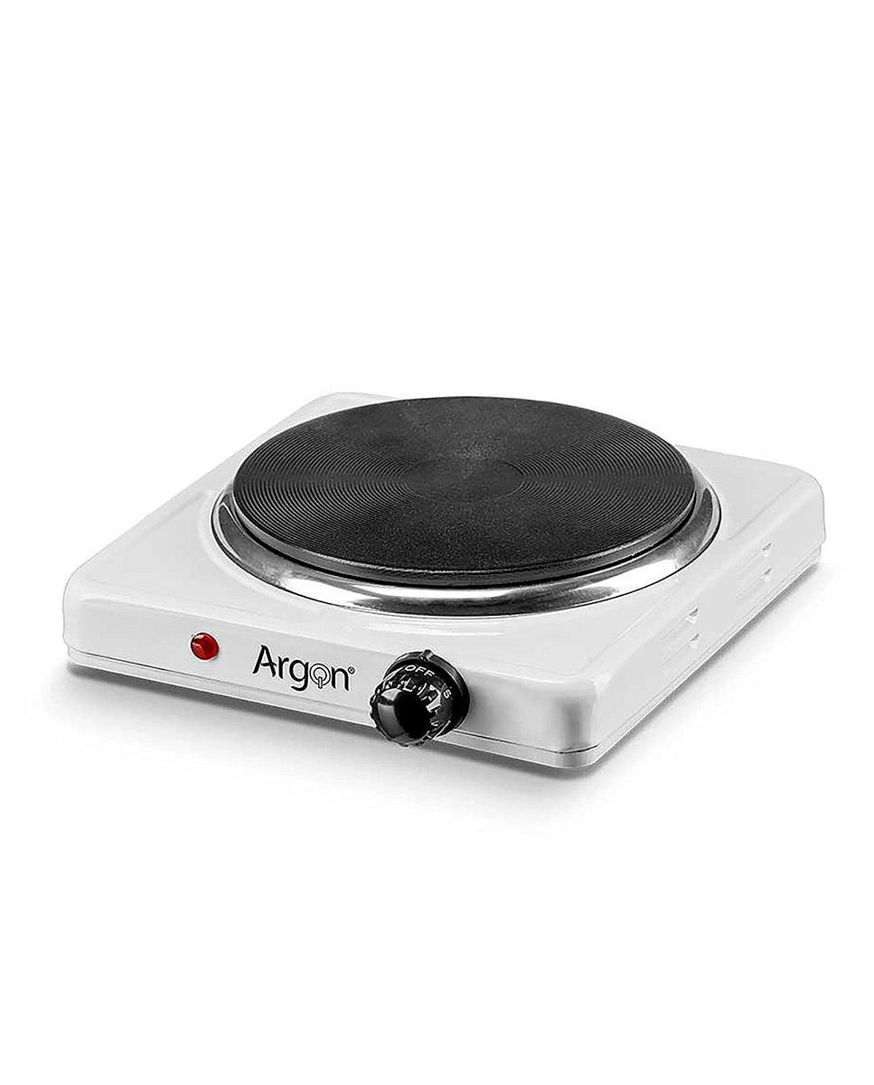 Placa eléctrica blanca. 1500W de potencia y 18.5 cm de diámetro.