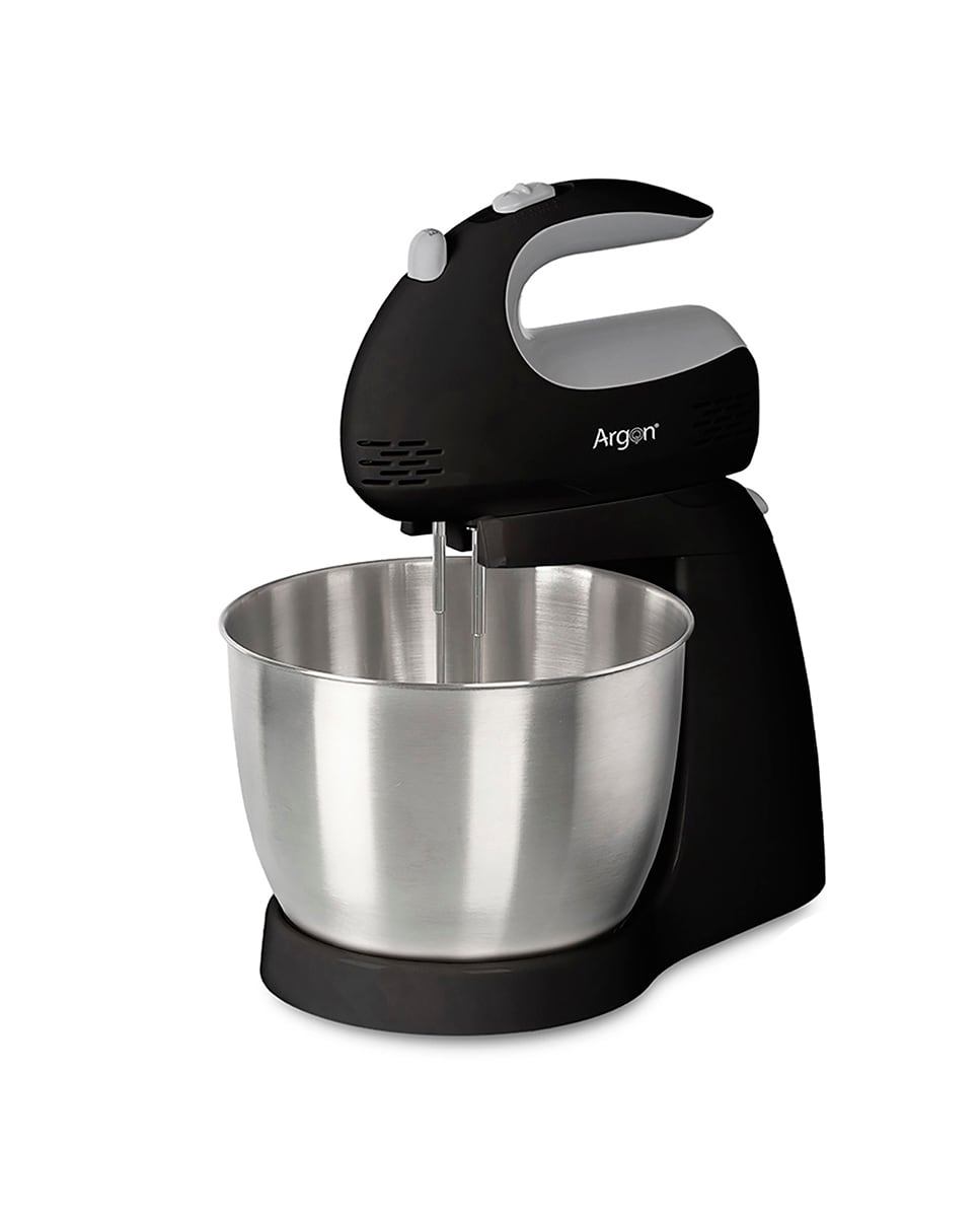 Amasadora negra con bol de 3L. 5 velocidades y 300W. Incluye acoples para batir y amasar.