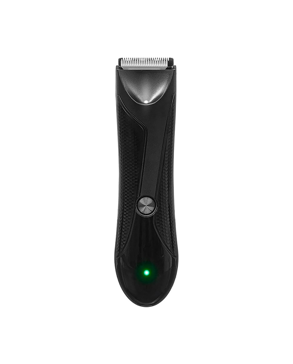 Recortadora negra con accesorios. Batería recargable de 600mAh. Incluye 4 Peines (1,5-2,5-3,5-4,5 mm).