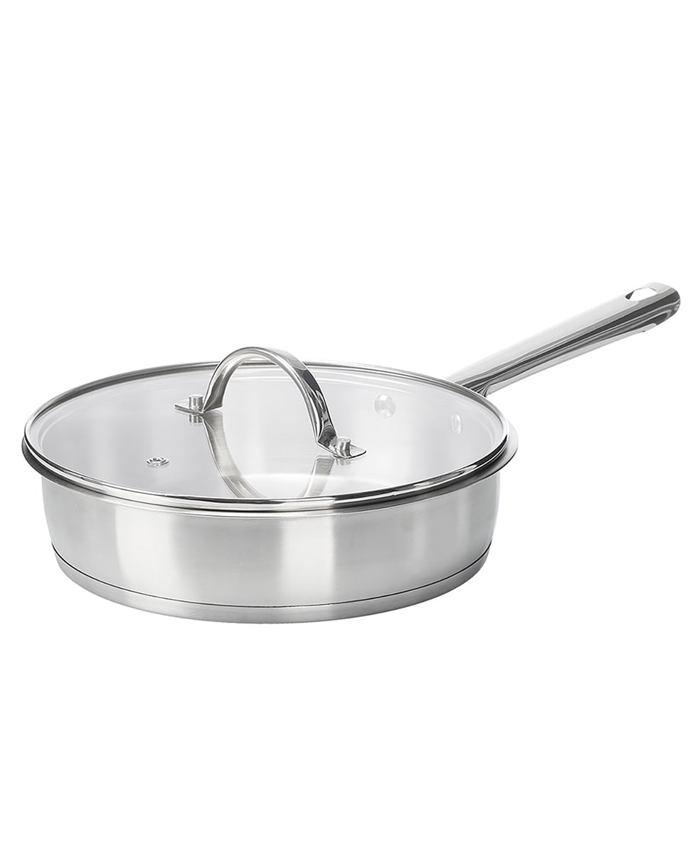 Sartén honda de acero inoxidable con tapa de cristal. Diámetro de 24cm y 2,2L.