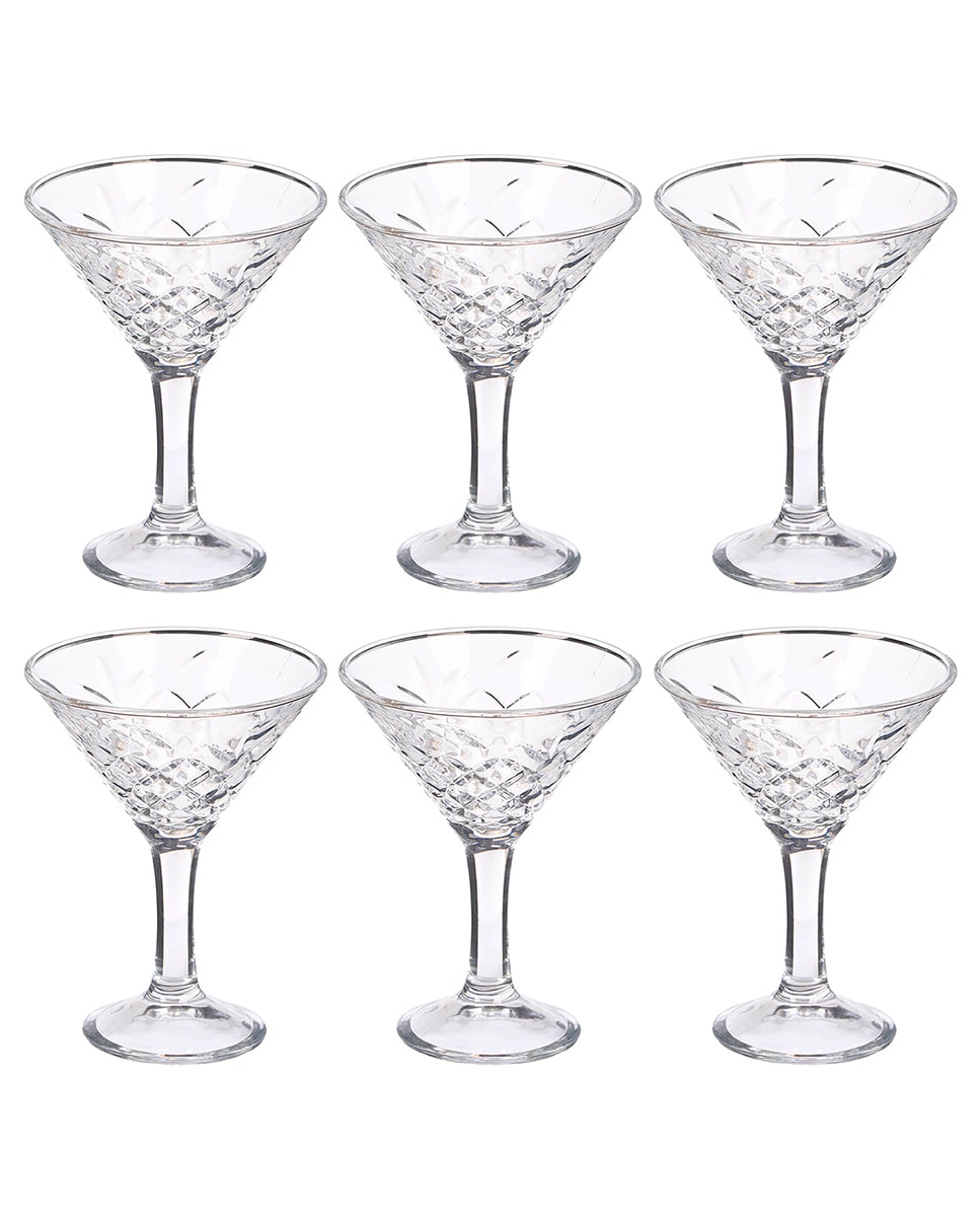 Pack 6 copas transparentes de martini troqueladas. 220ml.