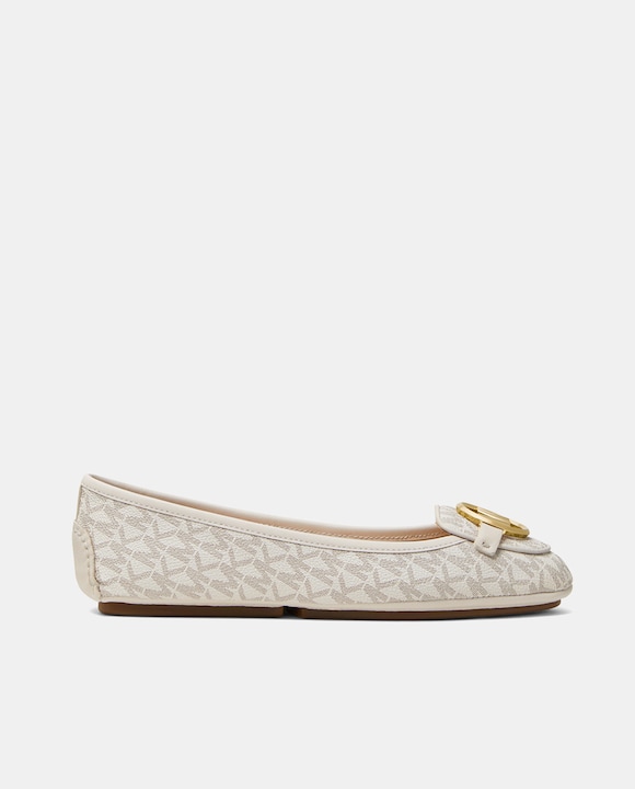 Bailarinas de mujer en beige con estampado de logotipo y aplique MK dorado