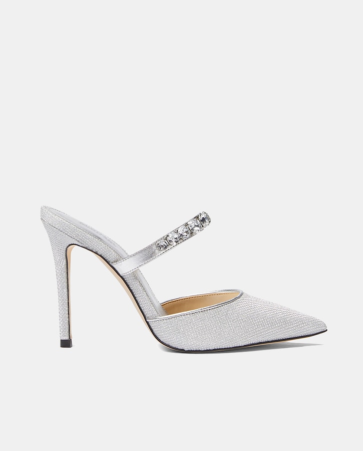 Mules Jessa de mujer con puntera afilada tira con pedrería y tacón de aguja