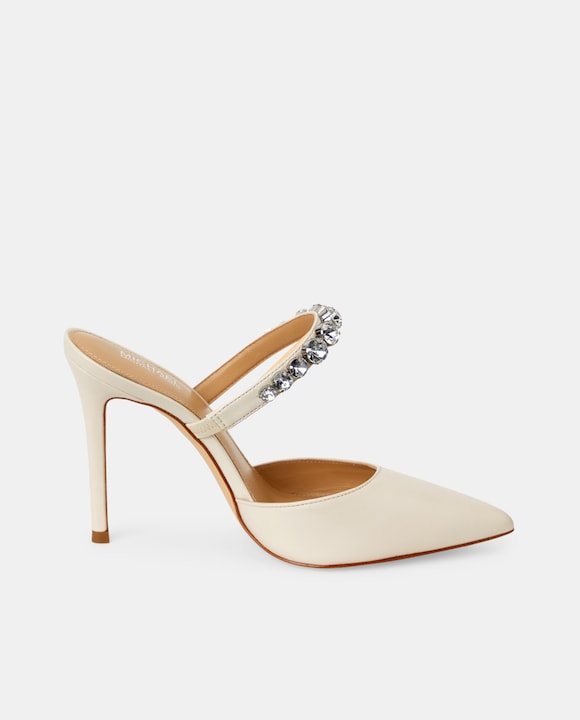 Mules Jessa de mujer piel strap pedrería tacón aguja