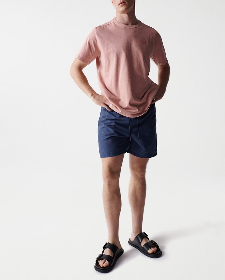Bañador tipo semi-bermudas de hombre con fantasía de olas