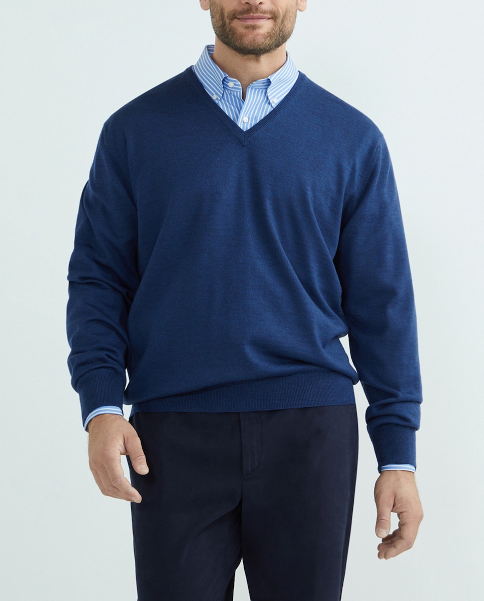 Jersey de lana de hombre de Lana cuello pico tallas grandes