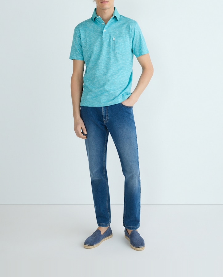 Polo de hombre manga corta de jacquard con bolsillo