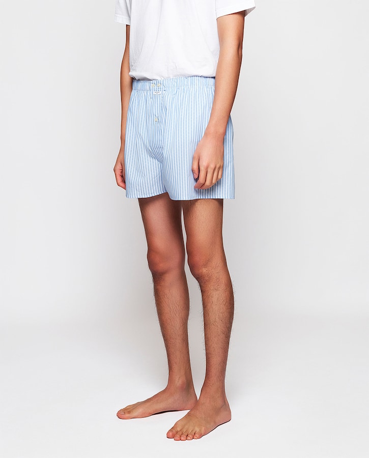 Bóxer de hombre azul de tela rayas blancas fil coupe
