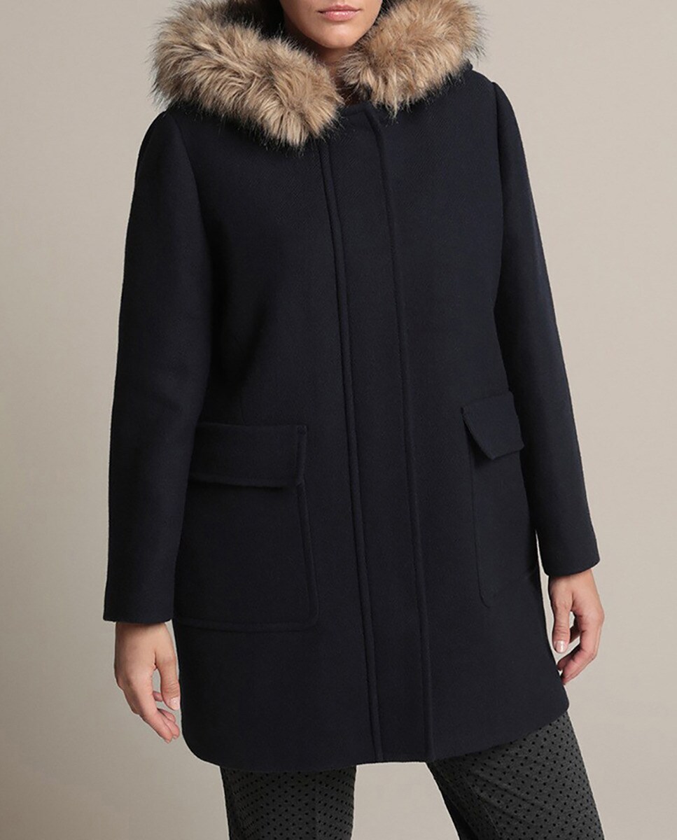 Abrigo de mujer talla grande con lana y cuello de pelo