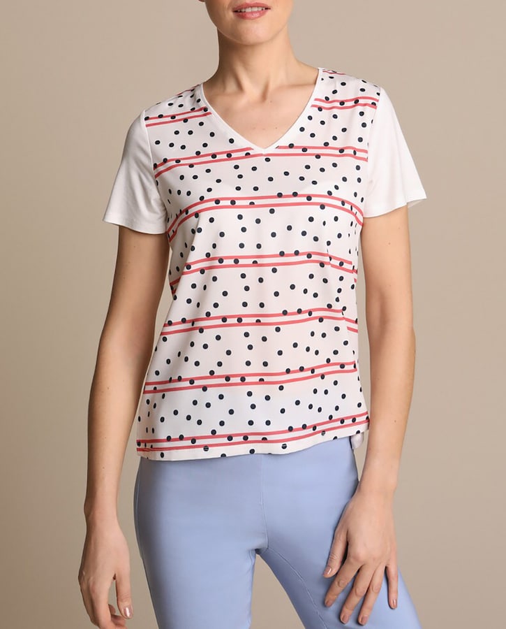 Camiseta de mujer con estampado de topos y rayas