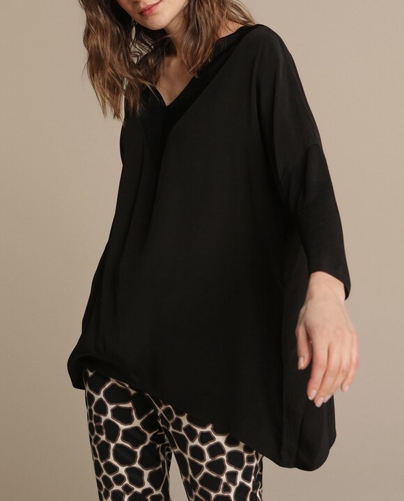 Blusón de mujer Woman Collection en color negro con ribete de lúrex
