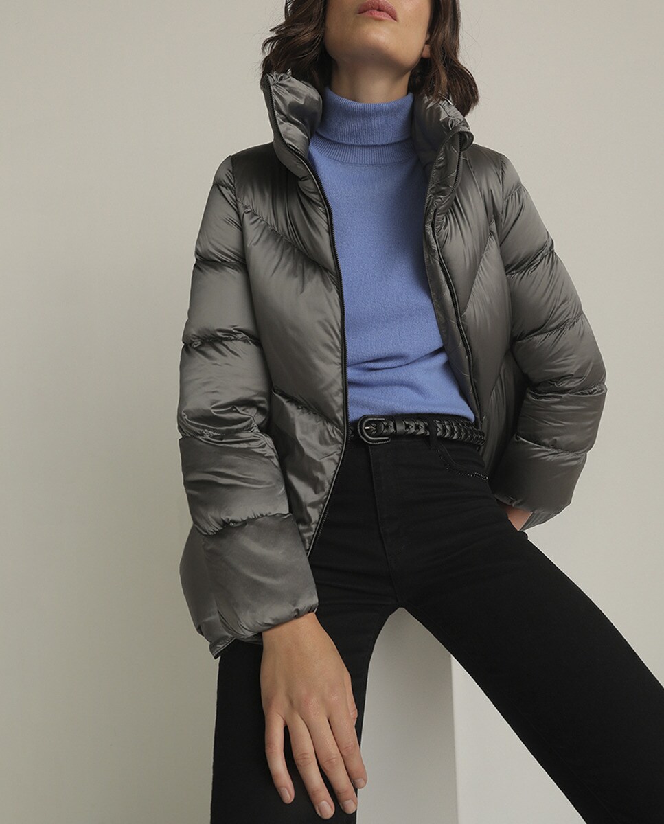Plumífero corto de mujer con cuello alto
