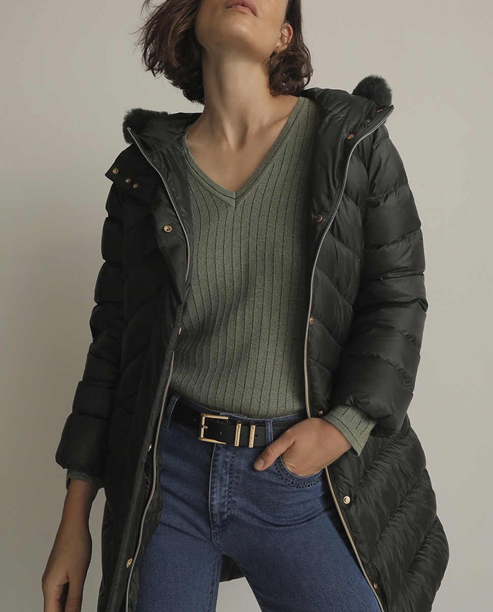 Parka corta de mujer con cierre delantero y bolsillos laterales