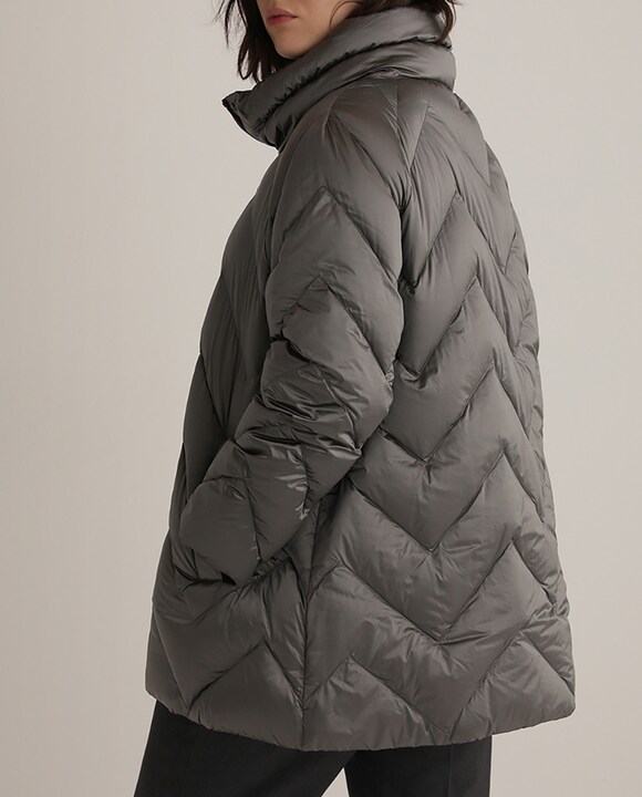 Plumífero corto de mujer talla grande con puntadas en zigzag