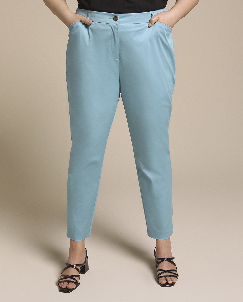 Pantalón semipitillo satinado de mujer talla grande