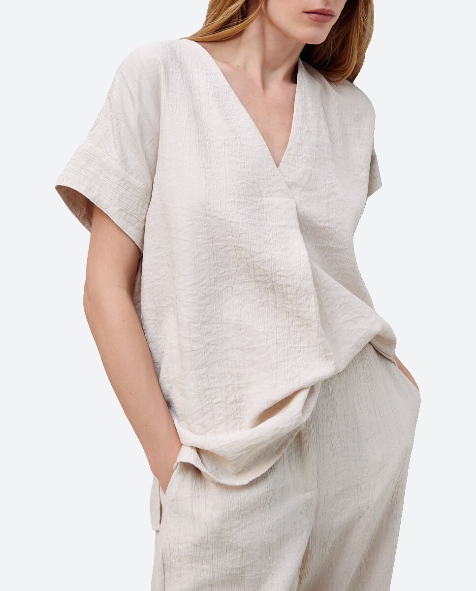 Blusa de manga corta con pliegue delantero