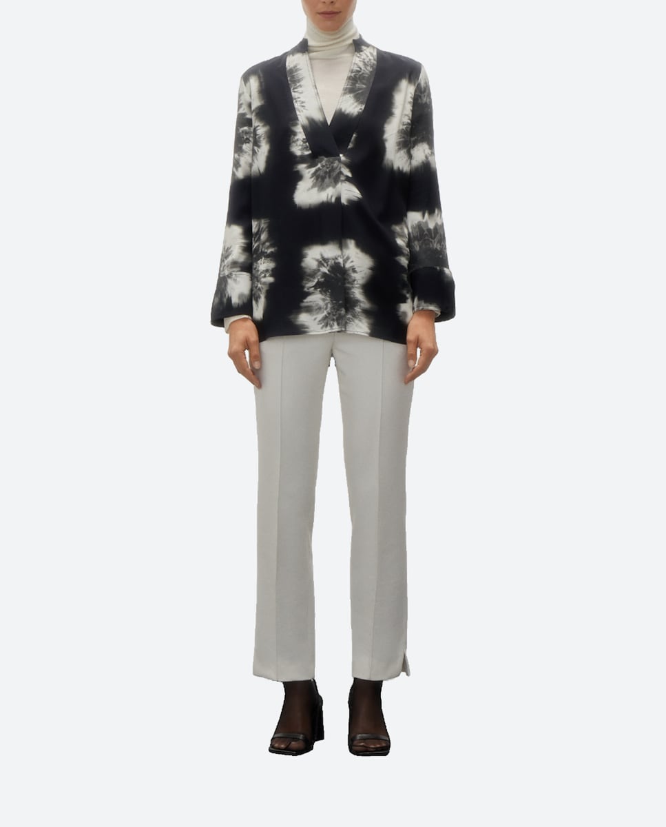 Blusón de mujer de manga larga con cuello pico y pliegue delantero