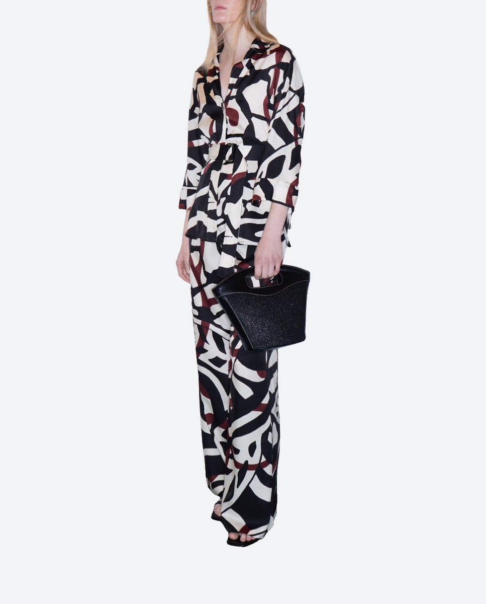Blusa de mujer con cuello pico y cinturón de hebilla