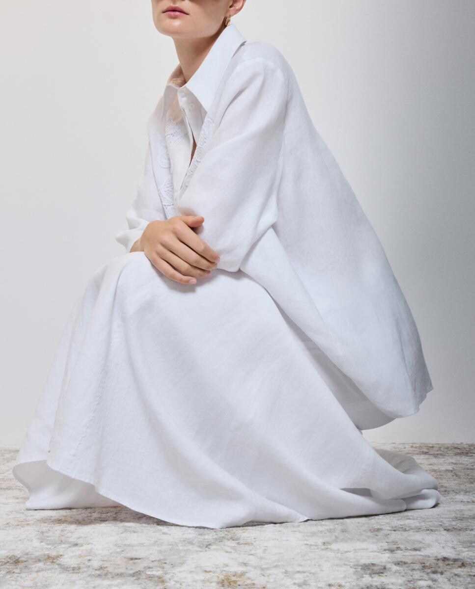 Blusón liso de lino con manga francesa de mujer