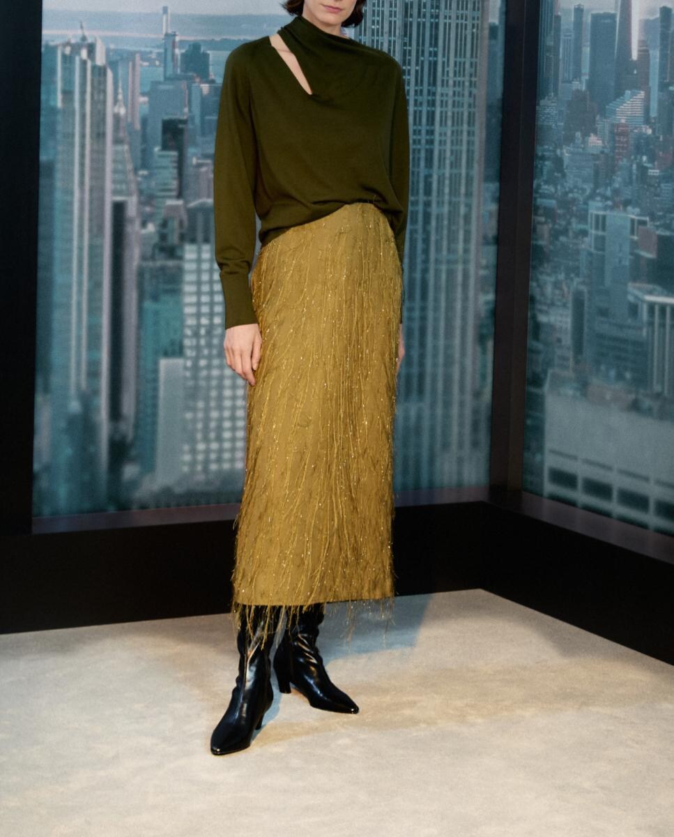 Falda midi lisa de mujer