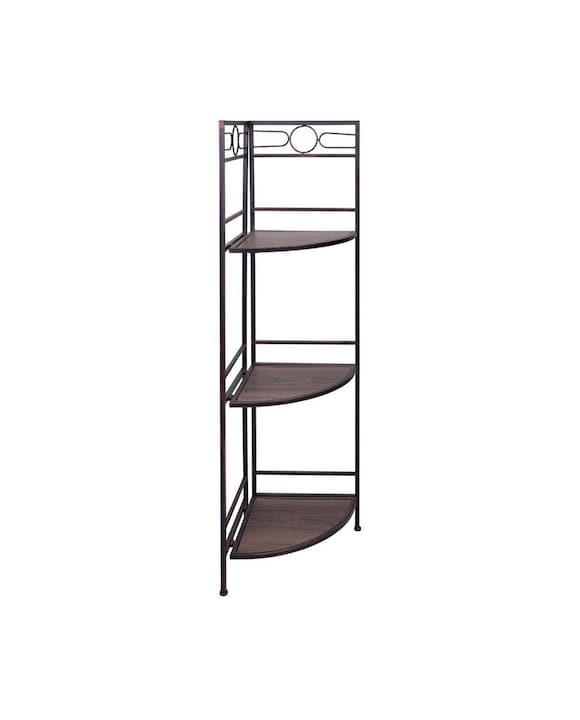 estantería rinconera de madera y metal